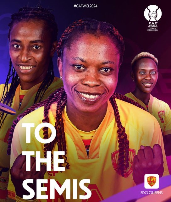 CAF WCL: Edo Queens beat Mamelodi Sundowns to semi-finals Edo Queens have qualified for the semi-final of the 2024 CAF Women’s Champions League. Edo Queens became the first Nigerian side to go beyond the CAF Women’s Champions League group stages.