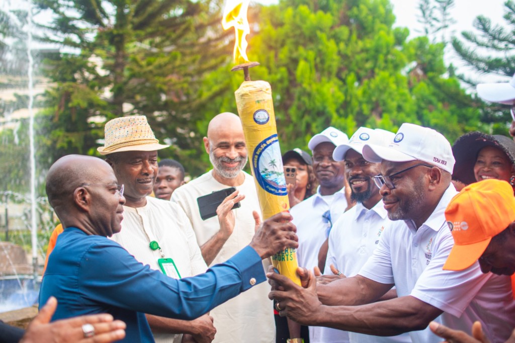 The state Commissioner for Youth and Sport, Nwaobilor Ananaba Nwadinma received the torch at the stadium before leading Team Abia to the Government House where it was presented to the Governor of Abia State, Dr Alex Otti.