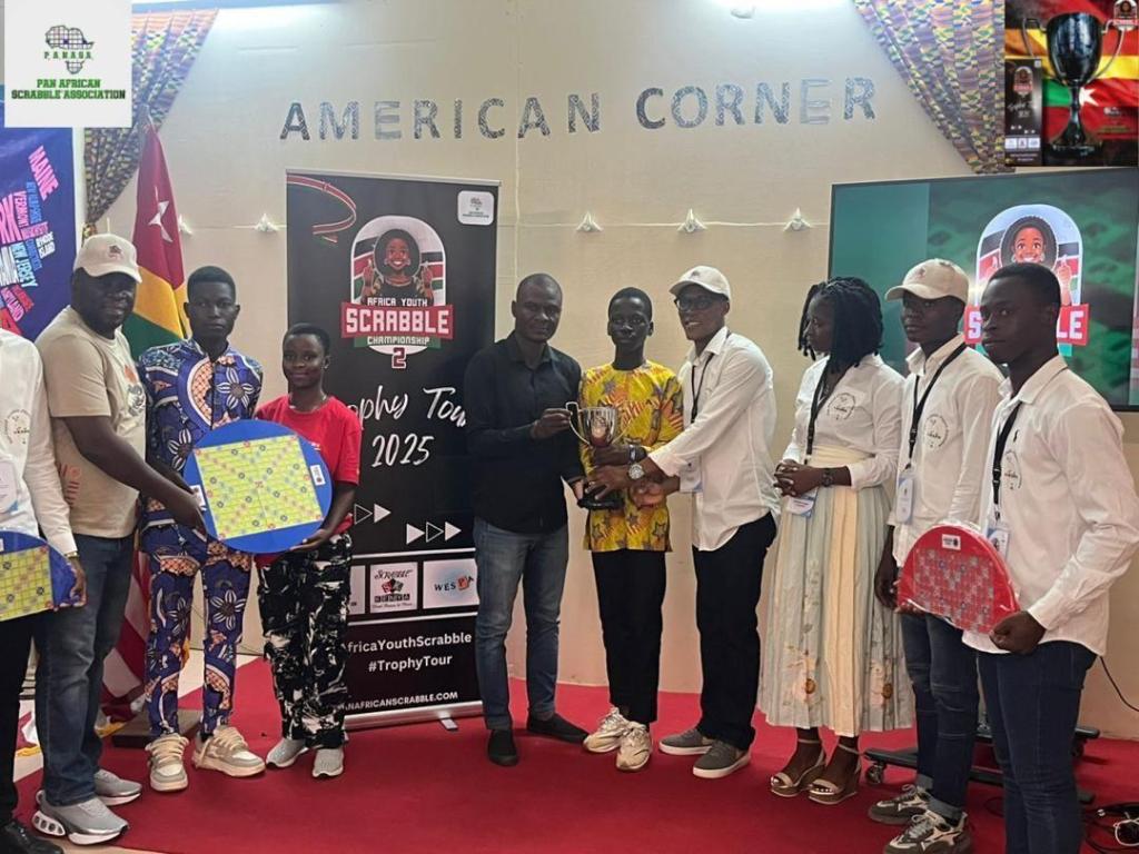The prestigious Africa Youth Scrabble Championship Trophy has arrived in Lome, Togo’s capital city. The Pan African Scrabble Association (PANASA) delegation, led by President Adekoyejo Adegbesan and the President of TESPA, Sam Afangninou presented the trophy at the American Corner, University of Lome on June 3rd.