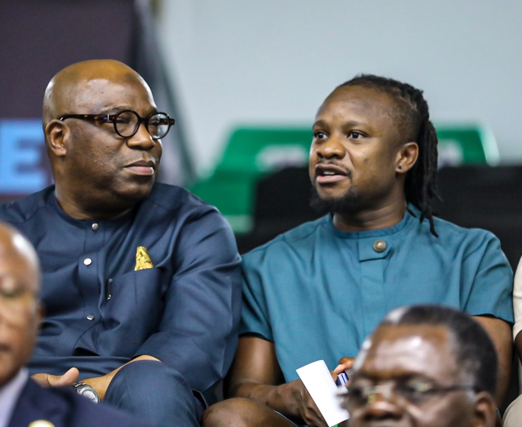 Picture caption: President, ITTF Africa, Wahid Enitan Oshodi (left) with former Super Eagles star, Ogenyi Onazi during the final of the 2025 ITTF Africa West Regional Championships in Lagos…at the weekend
