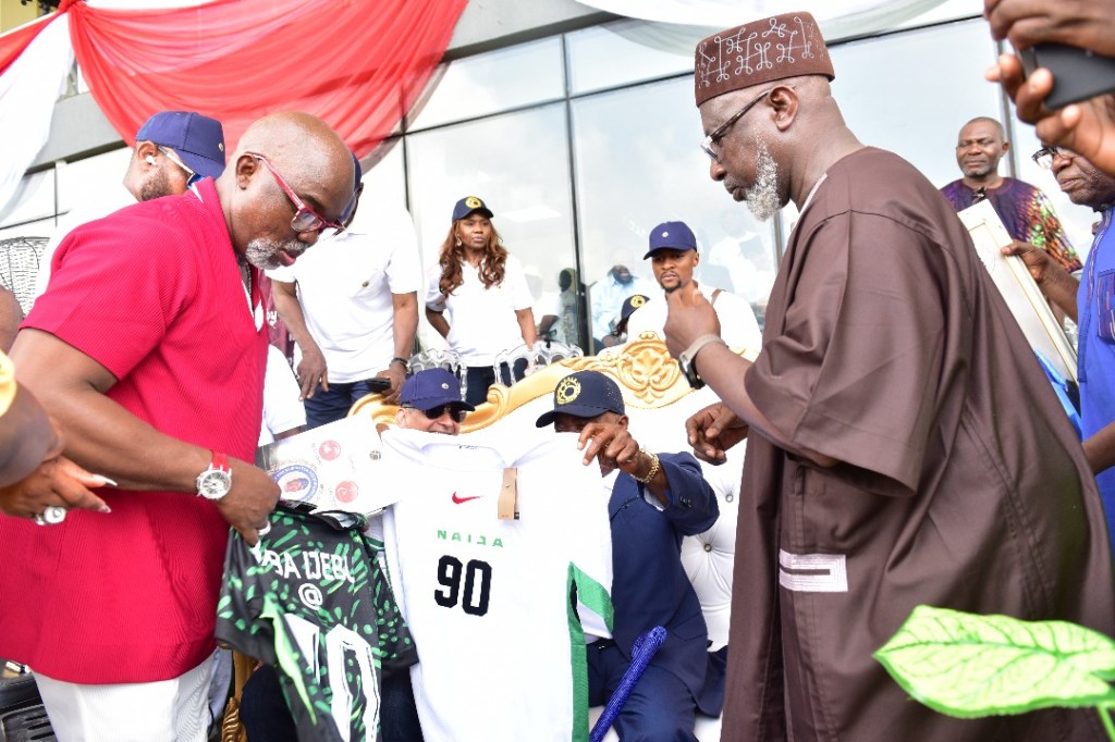 On Wednesday, the NFF General Secretary, Dr Mohammed Sanusi, (alongside former NFF President Amaju Melvin Pinnick) presented a portrait, as well as customised tracksuit and jerseys to Sir Adebutu at the Mobolaji Johnson Arena, Lagos on the occasion of a football match specially organized for the nonagenarian.